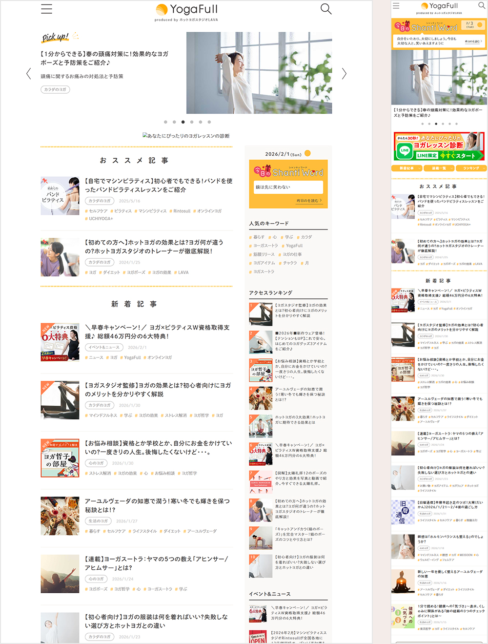 「YogaFull」は、“ヨガのある生活で、毎日を心地よく。心もカラダもハートフルになれる手のひらメディア” をコンセプトにした、